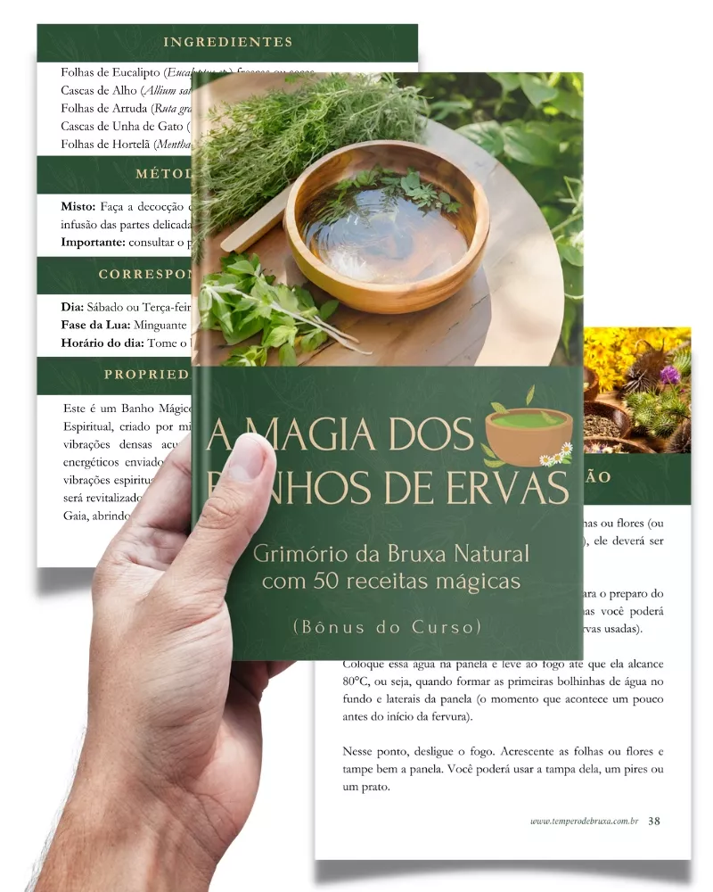 Descubra como preparar banhos de ervas de acordo com a sua intenção (amor, prosperidade, harmonia, limpeza e proteção) e tenha acesso à dezenas de banhos mágicos prontos para você transformar a sua vida.