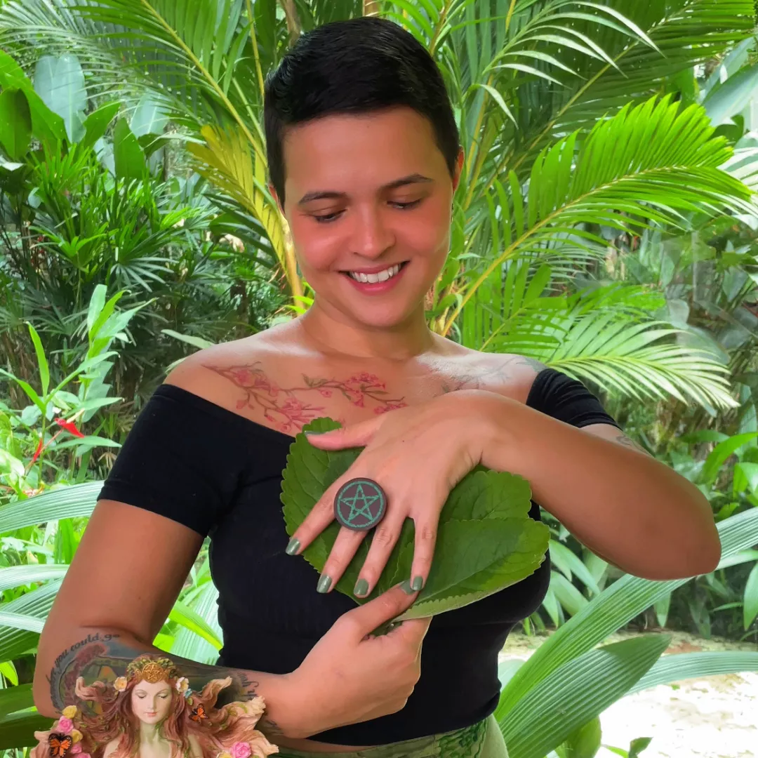 Amanda Celli é bruxa, bióloga, herbalista e a criadora do Tempero de Bruxa, um projeto com a missão de ensinar as pessoas como praticar Bruxaria Natural e fortalecer sua conexão com a Mãe Terra.