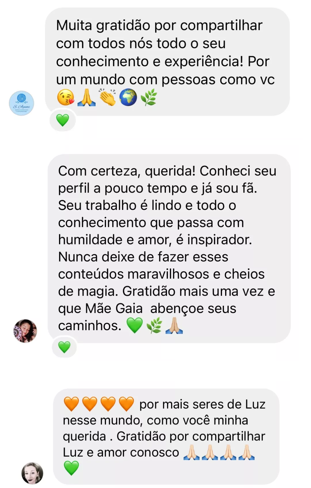 Em sua jornada espiritual sentiu um chamado profundo e tornou-se devota da Deusa Gaia, buscando semear no coração das pessoas o amor pela natureza – especialmente pelas plantas que são a sua paixão.