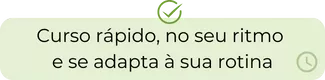 As aulas estão todas gravadas e disponíveis na plataforma para que você assista quando desejar, se adaptando facilmente à sua rotina, permitindo que você aprenda no seu próprio ritmo e disponibilidade de tempo. Os bônus estão em formato PDF para você fazer o download, salvar e até imprimir caso deseje.