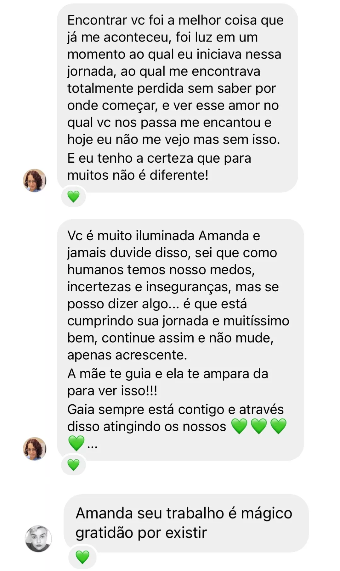 Diariamente, Amanda ajuda milhares de pessoas - através dos seus livros, cursos, conteúdos online e participações em eventos - a iniciarem suas práticas na bruxaria natural através do uso de ervas e outros ingredientes simples que você encontra na sua cozinha ou jardim.